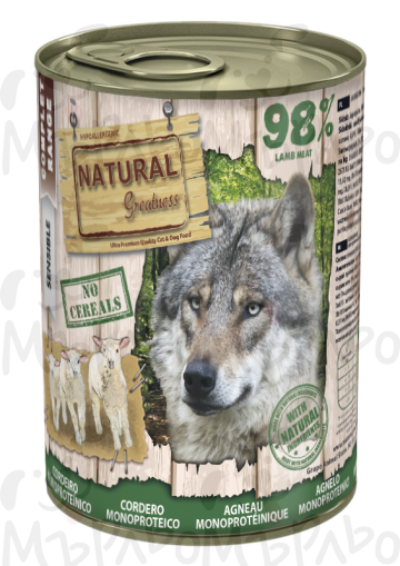 :Пълноценна консервирана храна за кучета, съдържаща само един източник на животински протеин – агнешко месо. Идеална за елиминационни диети и за кучета с алергии или непоносимости към други видове месо. Подходяща е и за чувствителни стомаси.