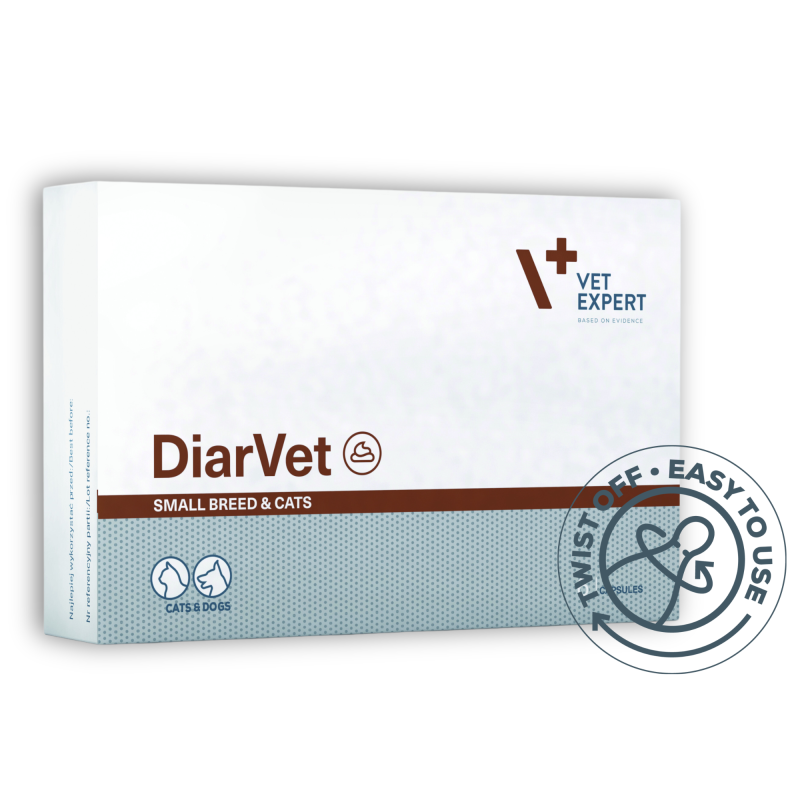 :Хранителна добавка под формата на изключително вкусна, делима таблетка, подпомагаща лечението на диария при кучета и котки.