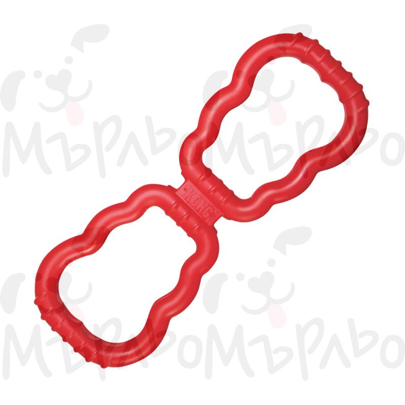 KONG Tug Toy е класическа играчка за теглене, изработена от естествена патентована гумена смес на KONG, която се разтяга и възстановява формата си при всяко захапване, с удобни дръжки за сигурен захват по време на игра.