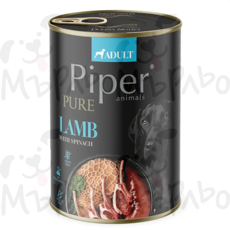 :Пълноценна мокра храна за кучета с агнешко месо и спанак. Осигурява висококачествен животински протеин и ценни витамини от спанака за поддържане на имунната система и жизнеността на кучето. Подходяща е за ежедневна употреба и балансирано хранене.