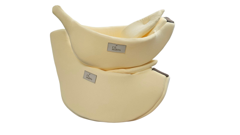 :Плюшено легло във форма на банан с подвижен капак, мек пълнеж и уютна вътрешност. Подходящо за котки и дребни породи кучета.