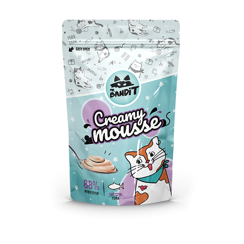 :Риба тон 84%, хидролизат от риба тон 4,6%, нишесте 1%, гума от рожкови семена 1%, минерали 0,5%, рапично масло 0,4%