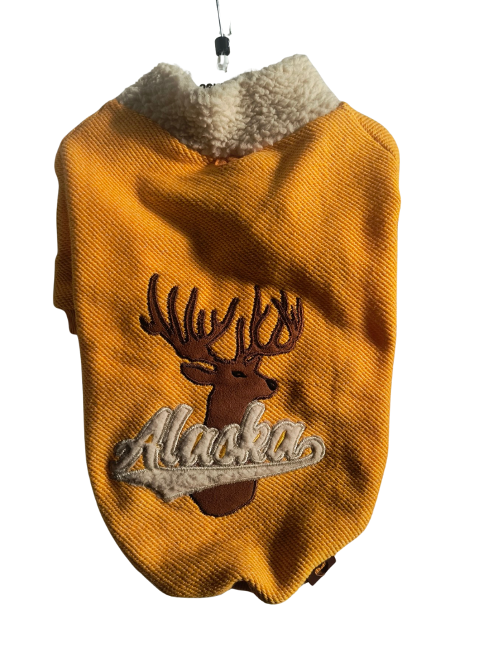 :Топъл и мек трико пуловер за кучета от малки и средни породи, декориран с красив релефен елен и надпис „Alaska“. Моделът е създаден за комфорт и ежедневна употреба, като осигурява приятна топлина в по-хладните дни и позволява пълна свобода на движение....