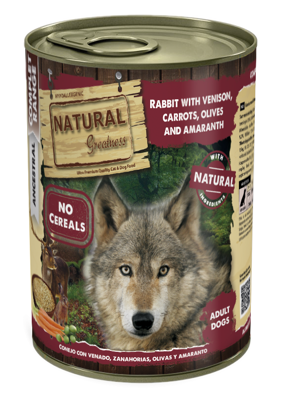 :Пълноценна влажна храна за кучета с високо съдържание на заешко месо и дивеч, обогатена с моркови и маслини. Формулата осигурява ценни протеини и полезни хранителни вещества за поддържане на добра кондиция и жизненост.