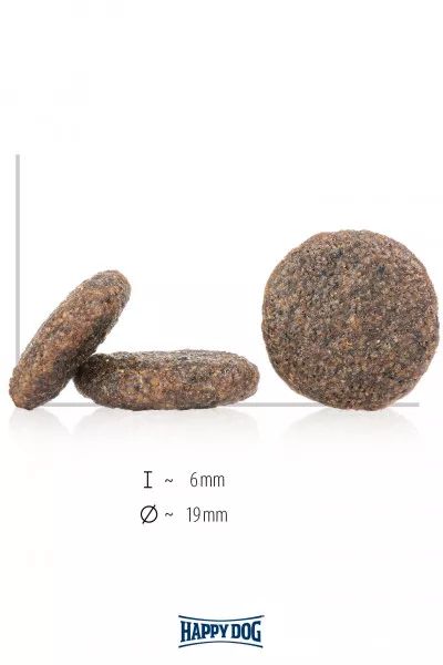 :Суров протеин 23,0 %, сурови мазнини 12,0 %, сурови влакнини 2,5 %, сурова пепел 7,0 %, калций 1,5 %, фосфор 1,0 %, натрий 0,4 %, омега-6 мастни киселини 3,5 %, омега-3 мастни киселини 0,4 %.