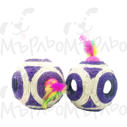 :играчка за котки, топка с отвори и звънчаща топчица с пера
