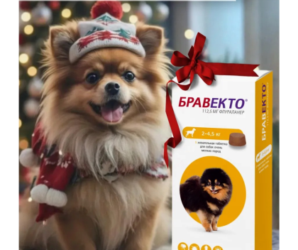 :Bravecto 112.5 mg е дъвчаща таблетка за много малки кучета (2–4.5 кг), предназначена за лечение и профилактика на опаразитяване с бълхи и кърлежи. Осигурява бързо действие и защита за период до 12 седмици.
