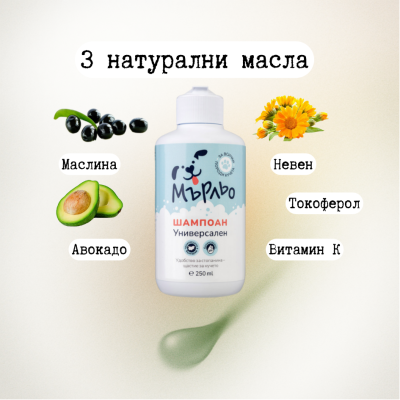 :Нежно почиства, без да нарушава естествената хидратация,успокоява и подхранва кожата,поддържа нормално pH,придава мекота и приятен аромат на козината,подпомага противовъзпалителните и регенериращи процеси, укрепва и хидратира кожата и козината.
