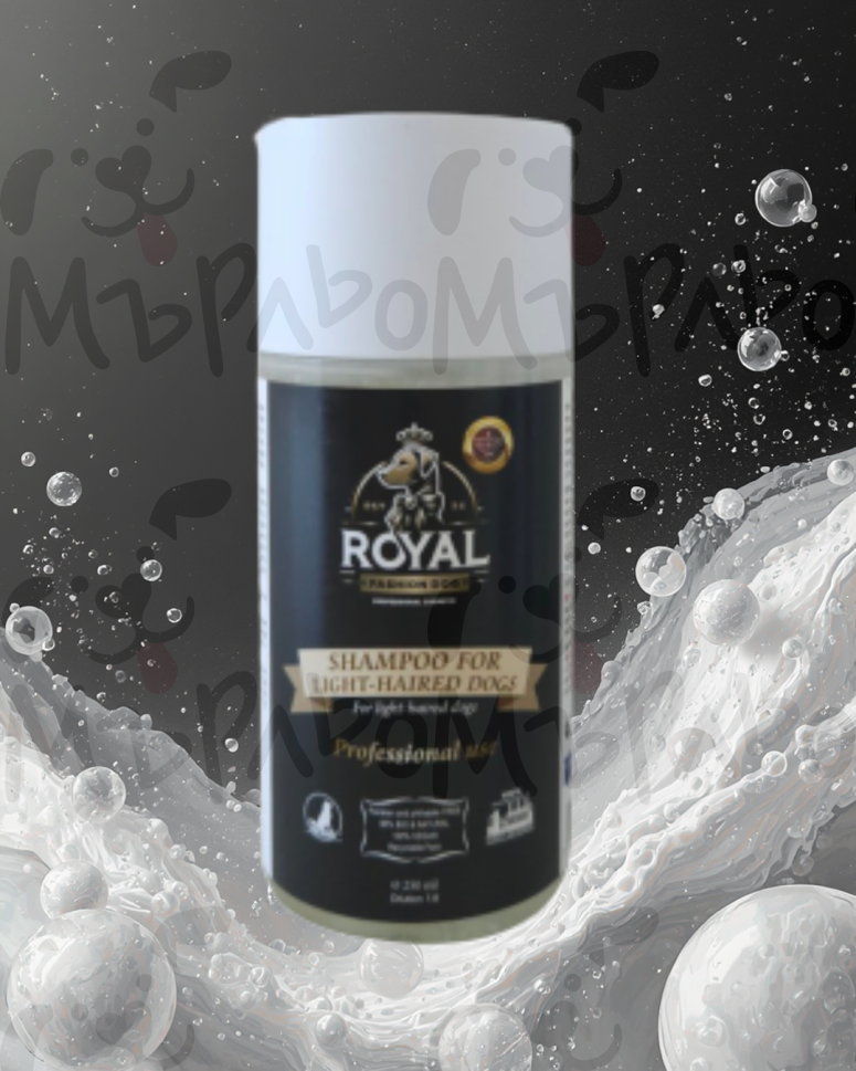 Royal Fashion Dog – шампоан за светла козина е концентриран шампоан за професионална употреба при кучета със светла козина. Почиства и улеснява разресването на сплъстена козина, изплаква се бързо и придава естествен блясък. Маслото от лайка подсилва светлите нюанси, а маслото от авокадо запечатва клетките на кутикулите, правейки козината гладка и блестяща. Подходящ за всички породи кучета над 4-месечна възраст.