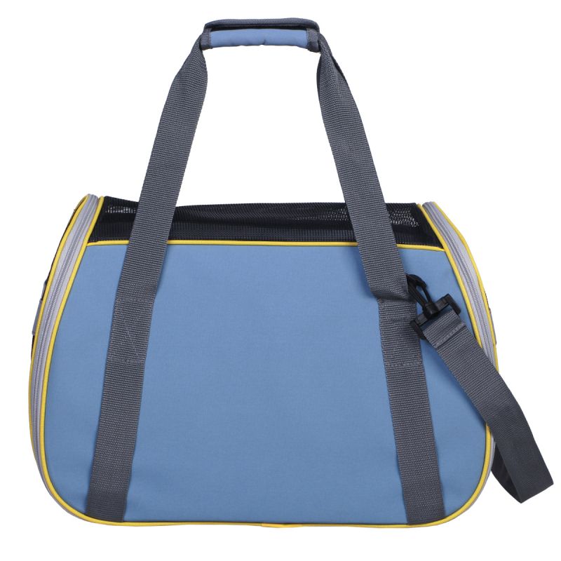 Изработена е от устойчив на износване и атмосферни условия полиестер 600D с водоустойчива подложка, която гарантира суха и чиста вътрешност. Мрежестите панели осигуряват отлична вентилация и видимост, позволявайки на домашния любимец да подаде глава навън или да остане удобно скрит вътре. Късите дръжки и регулируемата презрамка позволяват различни начини на носене, а напълно разгъваемата конструкция улеснява почистването и съхранението.