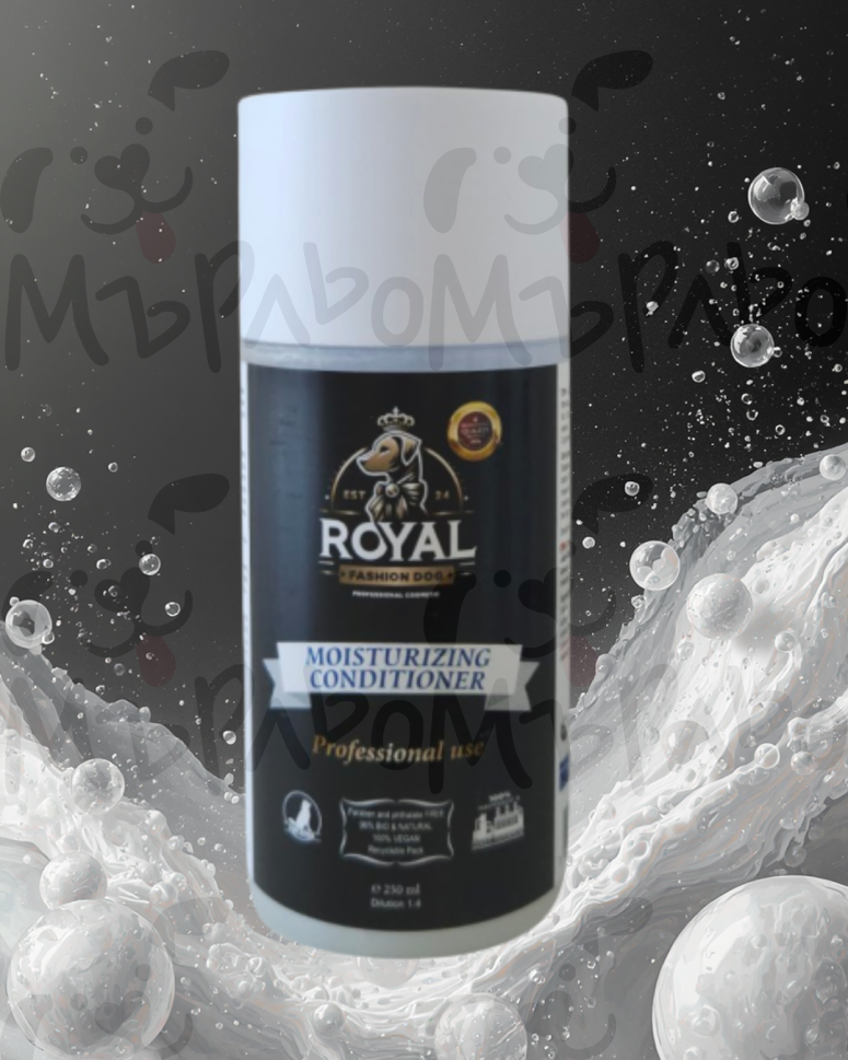Royal Fashion Dog – Балсам хидратиращ-професионален балсам за кучета, който подхранва и омекотява козината, като ѝ придава мекота, еластичност и блясък. Формулата е създадена за възстановяване и интензивна грижа за суха и изтощена козина. Подходящ за всички породи кучета над 4-месечна възраст.