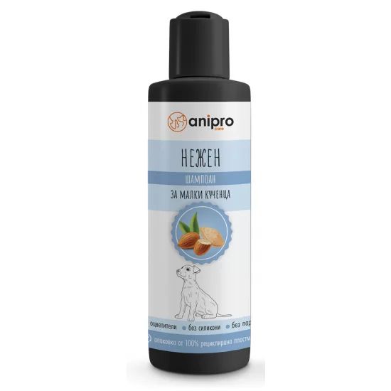 Произведен в България, с биоразградима формула и опаковка от 100% рециклирана пластмаса, Anipro Нежен шампоан е идеален избор за първата грижа на вашия домашен любимец.