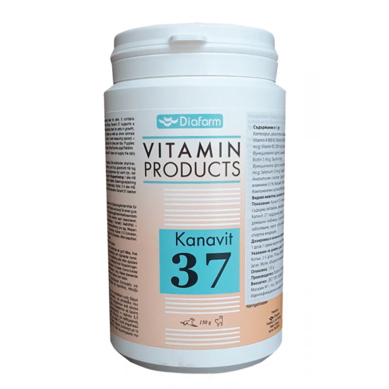 Kanavit 37 е специализирана хранителна добавка, която осигурява пълноценна подкрепа за здравето и жизнеността на вашите домашни любимци. Тази концентрирана добавка съдържа баланс от витамини, минерали, незаменими мастни киселини и протеини, които спомагат за поддържането на здрава кожа и лъскава козина. Подходяща за кучета, котки, птици, морски свинчета, зайци и коне, Kanavit 37 е създадена, за да отговори на специфичните нужди на вашето животно, независимо дали е в период на растеж, бременност, възстановяване или спортна активност. 🌟