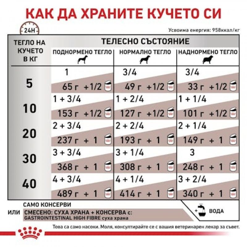 Royal Canin VHN Gastrointestinal High Fiber Dog Can представлява специализирана ветеринарна влажна диета, предназначена за поддържане на здравословната функция на храносмилателната система при кучета със стомашно-чревни чувствителности.