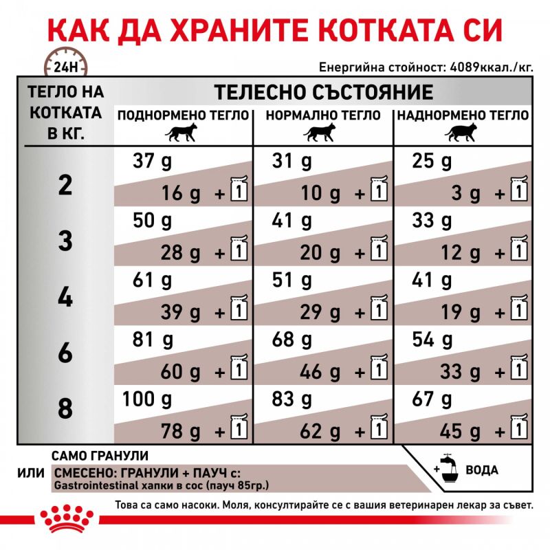 Описание:Поддържа храносмилателното здраве на вашата котка в случаи на остра и хронична диария, лошо храносмилане или подобни стомашно-чревни чувствителности