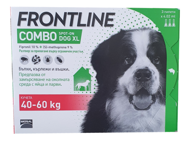 Начало Ветеринарна Аптека Противопаразитни Фронтлайн комбо 40 - 60 кг - спот он 3 бр