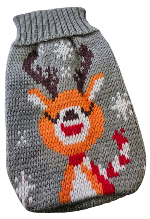 Топъл и мек коледен пуловер за малки кучета, изработен от 100% акрил. Веселата апликация „еленче“ и зимният дизайн го правят идеален за празничния сезон и уютни разходки в студените дни.