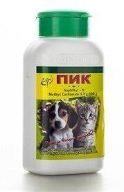 ПИК е противопаразитна пудра за кучета и котки, която убива пълзящи паразити - бълхи, въшки, кърлежи, космояди